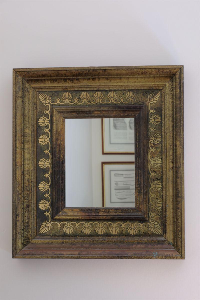 Vintage Green & Brass Wall Mirror With a Marble Effect Paint Finish