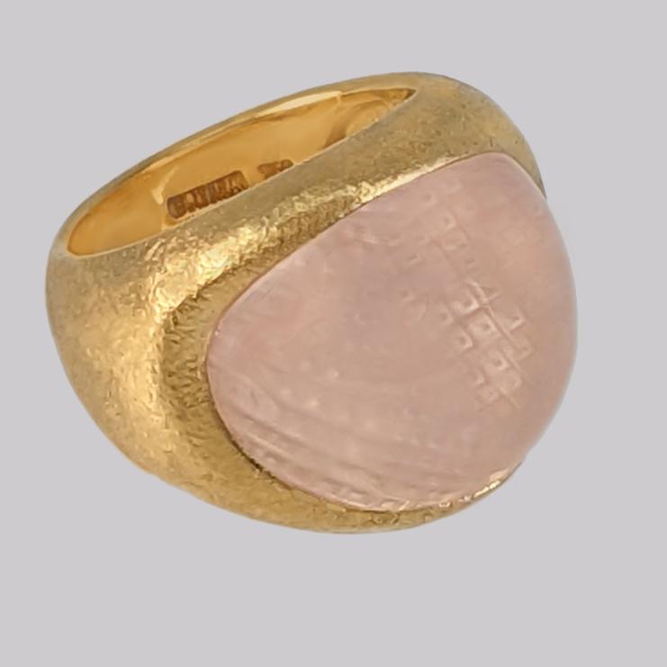Vintage Grima Rose Quarts Ring 18ct Gold 1960s Andrew Grima Huge Cocktail Ring