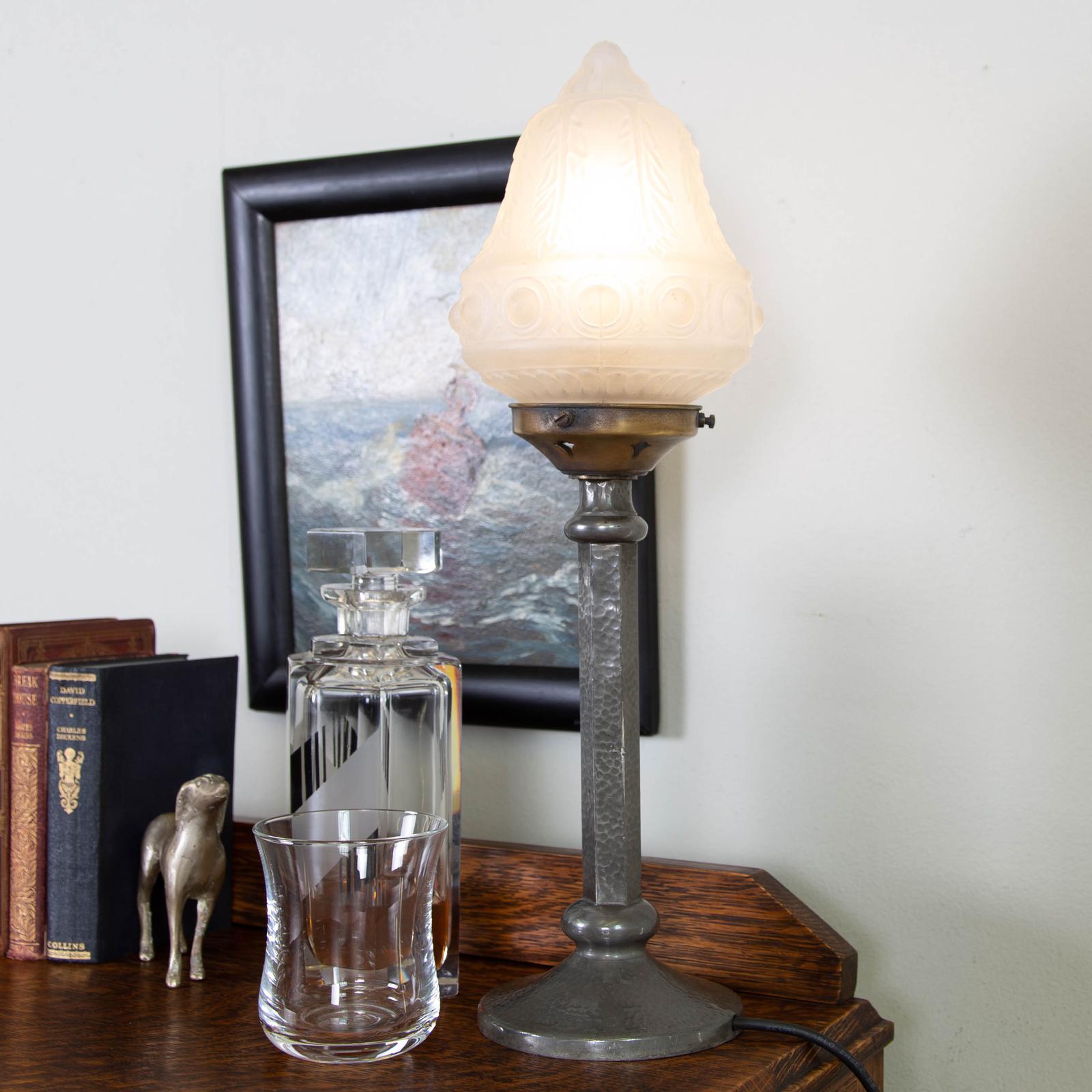 Vintage Hammered Pewter Table Lamp c.1940 (1 of 7)