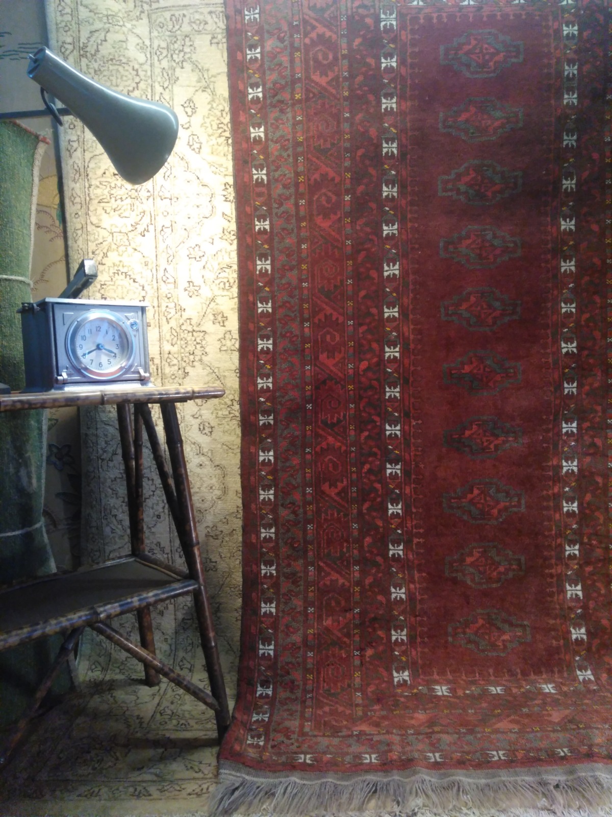 Vintage Handmade Afghan Rug, Great Colours and Condition 100% Wool Pile Warp & Weft