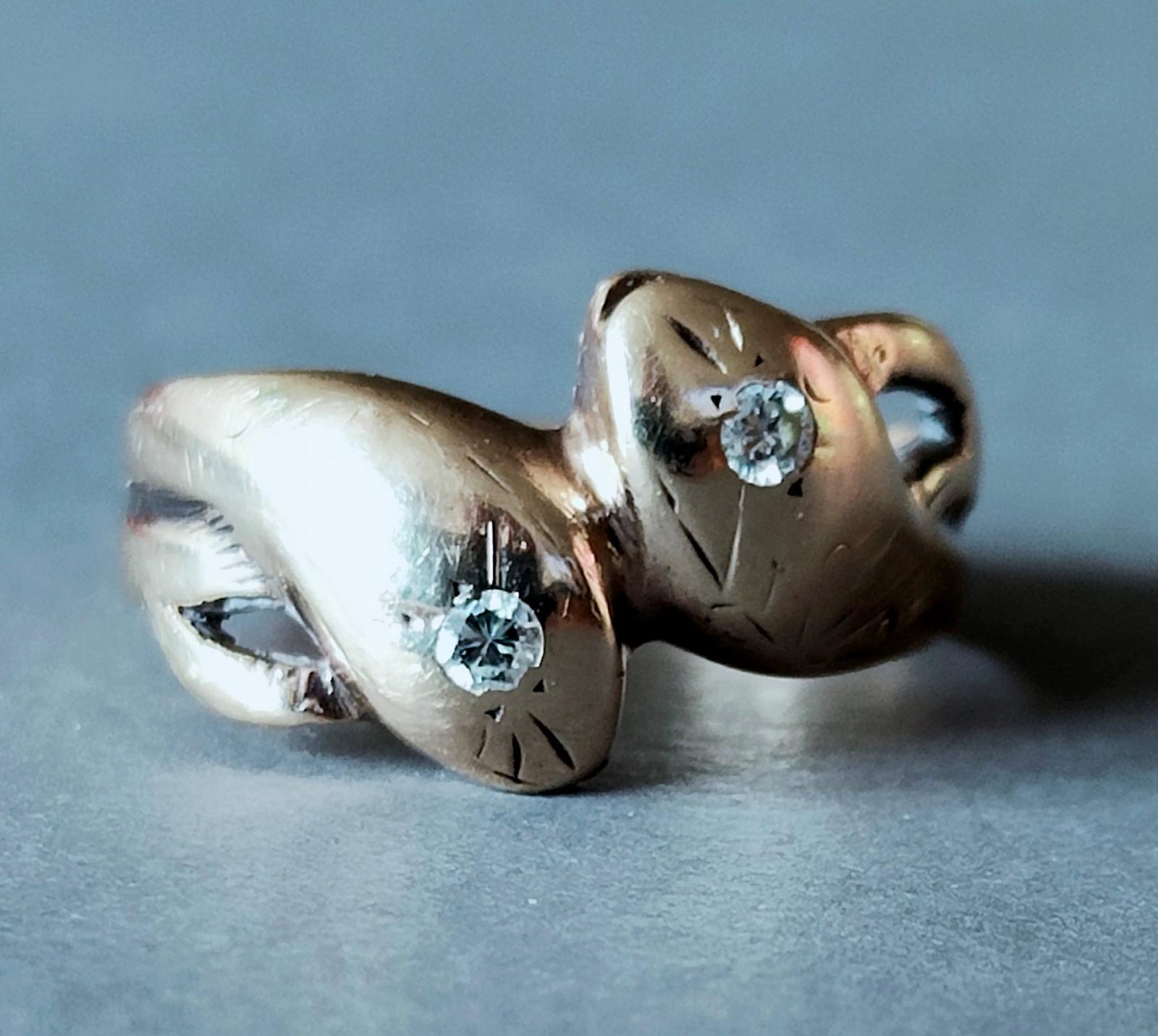 Vintage Heavy 9ct Gold Diamond Snake Ring