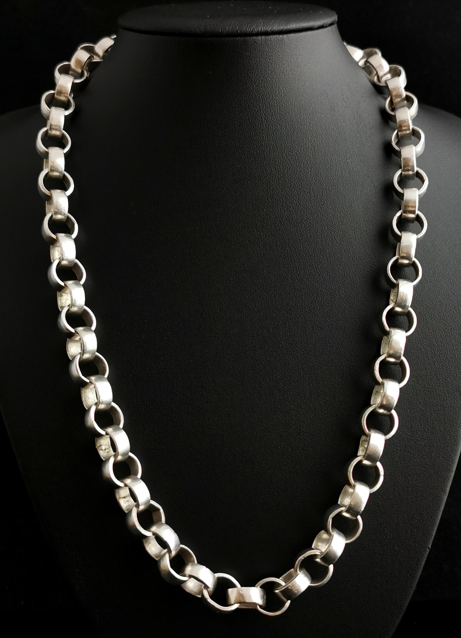 Vintage Heavy Fine Silver Rolo Link Chain Necklace