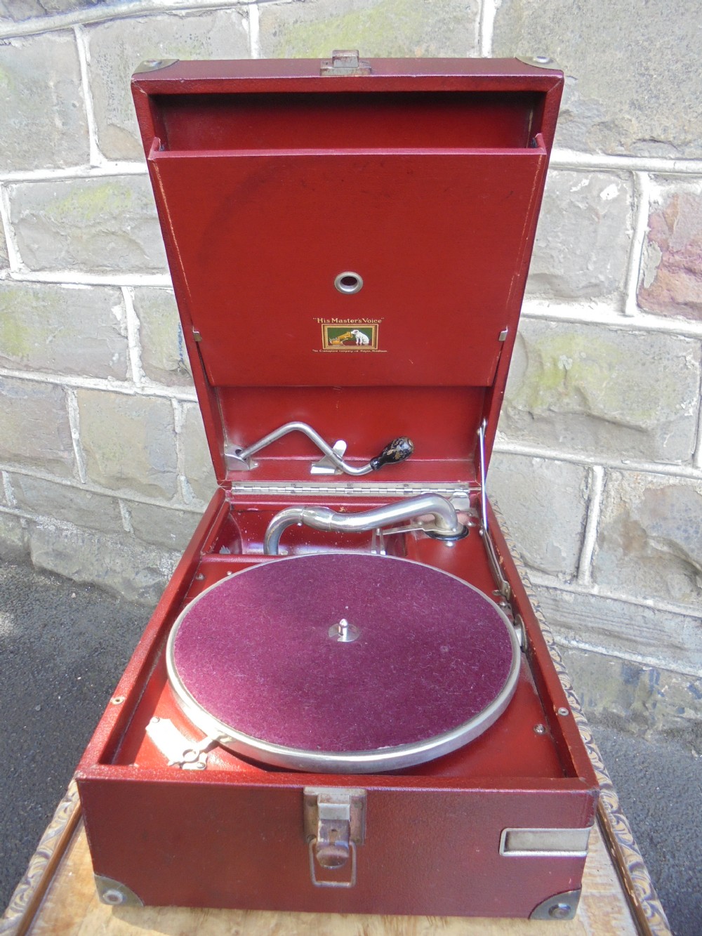 Vintage HMV Red Cased Portable Gramophone Model 101