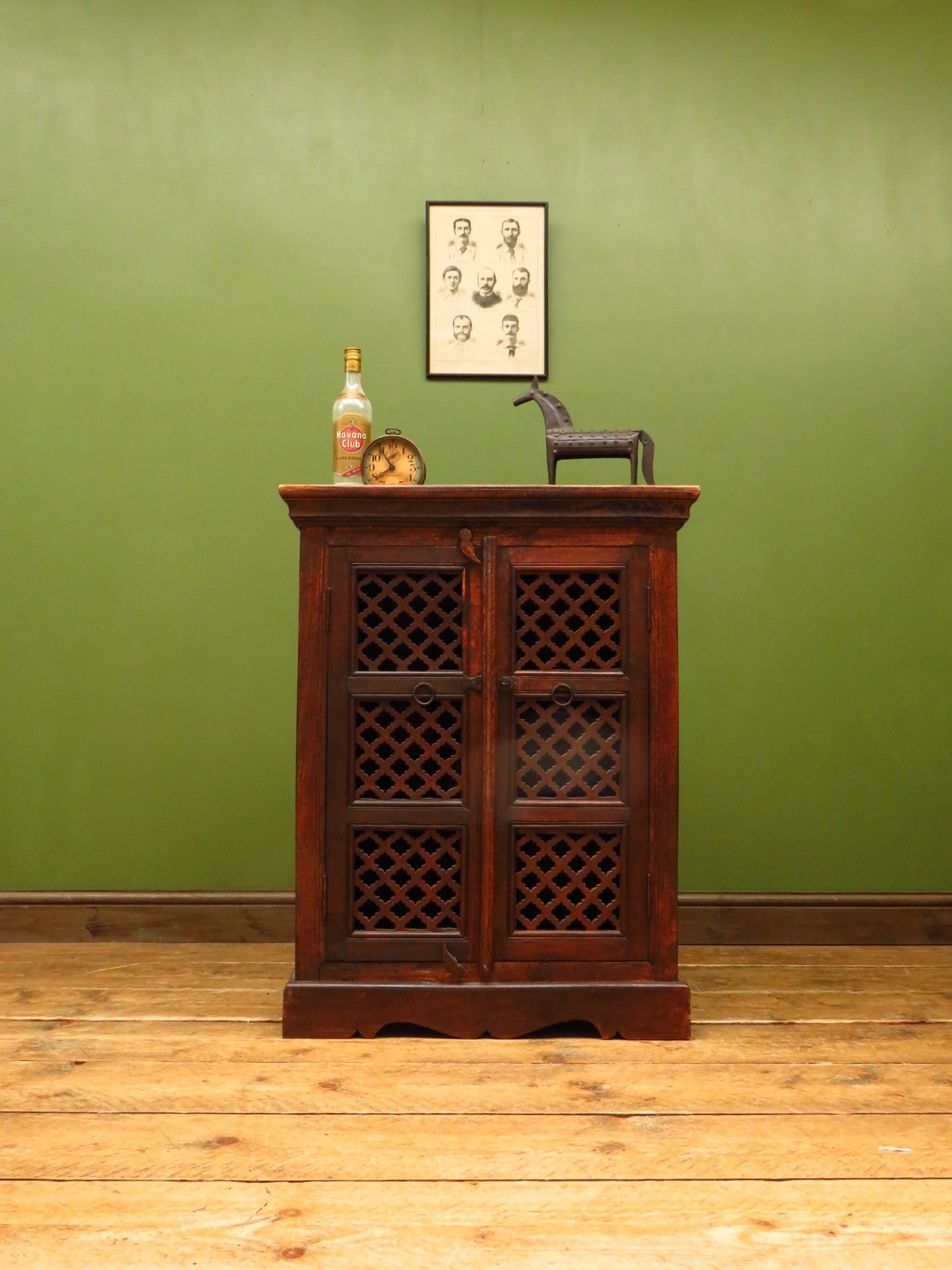 Vintage Indian Cabinet, Storage Cabinet with Trellis Doors