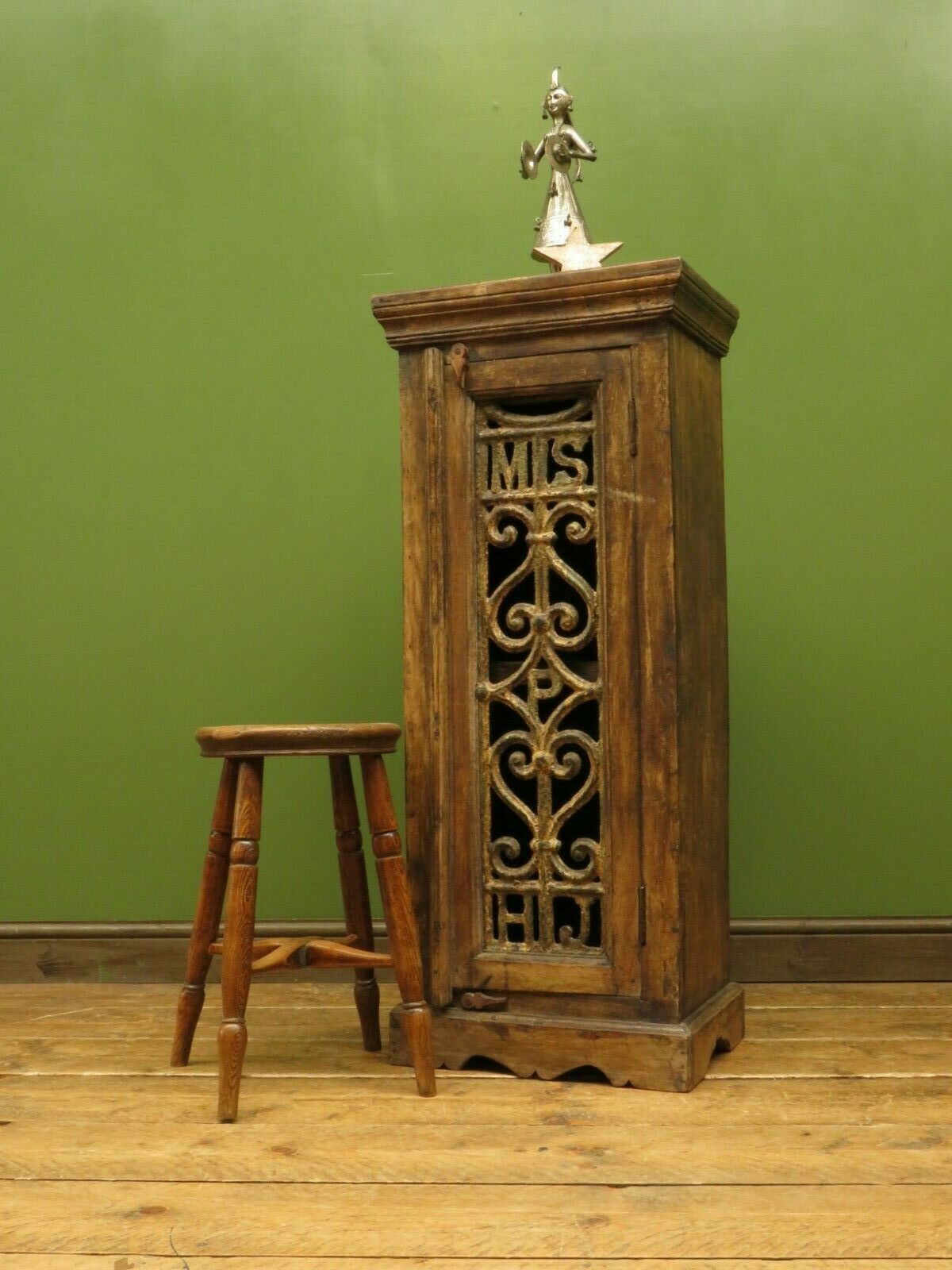 Vintage Indian Cabinet with Iron Railway Insert Door, Narrow Drinks Cabinet, No2