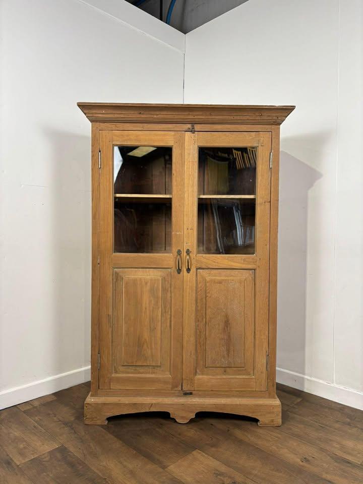 This Vintage Indian Reclaimed Solid Wood Glazed Cupboard is located in Wrexham, United Kingdom
