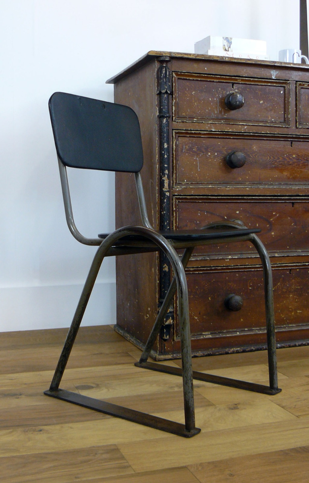 Vintage Industrial Factory Evertaut Chair Stool on Sleigh Legs