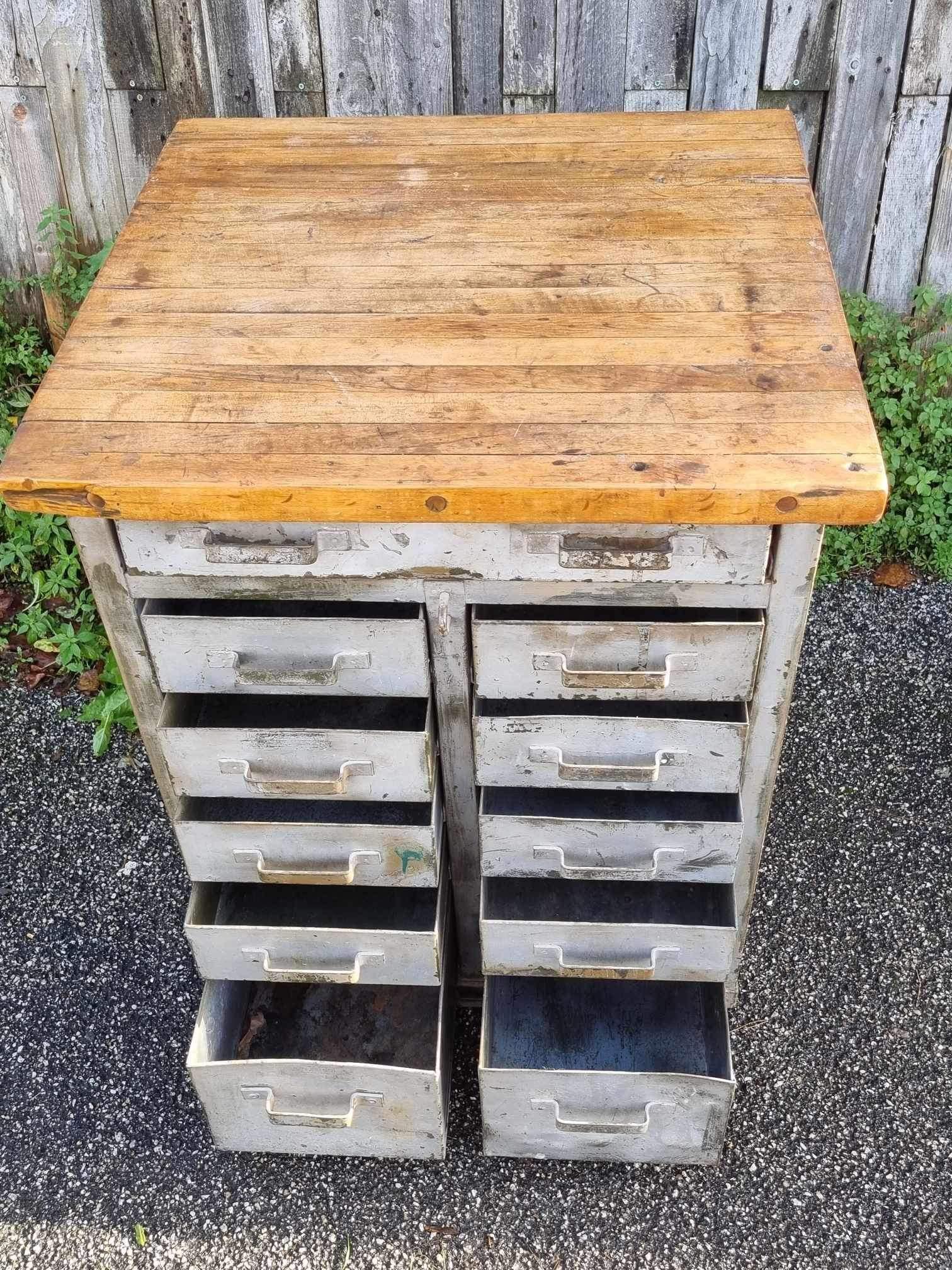 Vintage Industrial Metal & Timber Kitchen Island Butchers Block