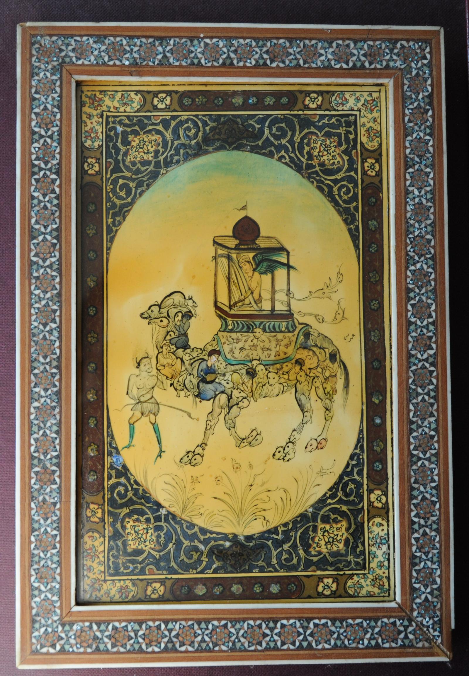 Vintage Islamic Persian Composite Painting by Ahmad Omoumi in Khatam Frame