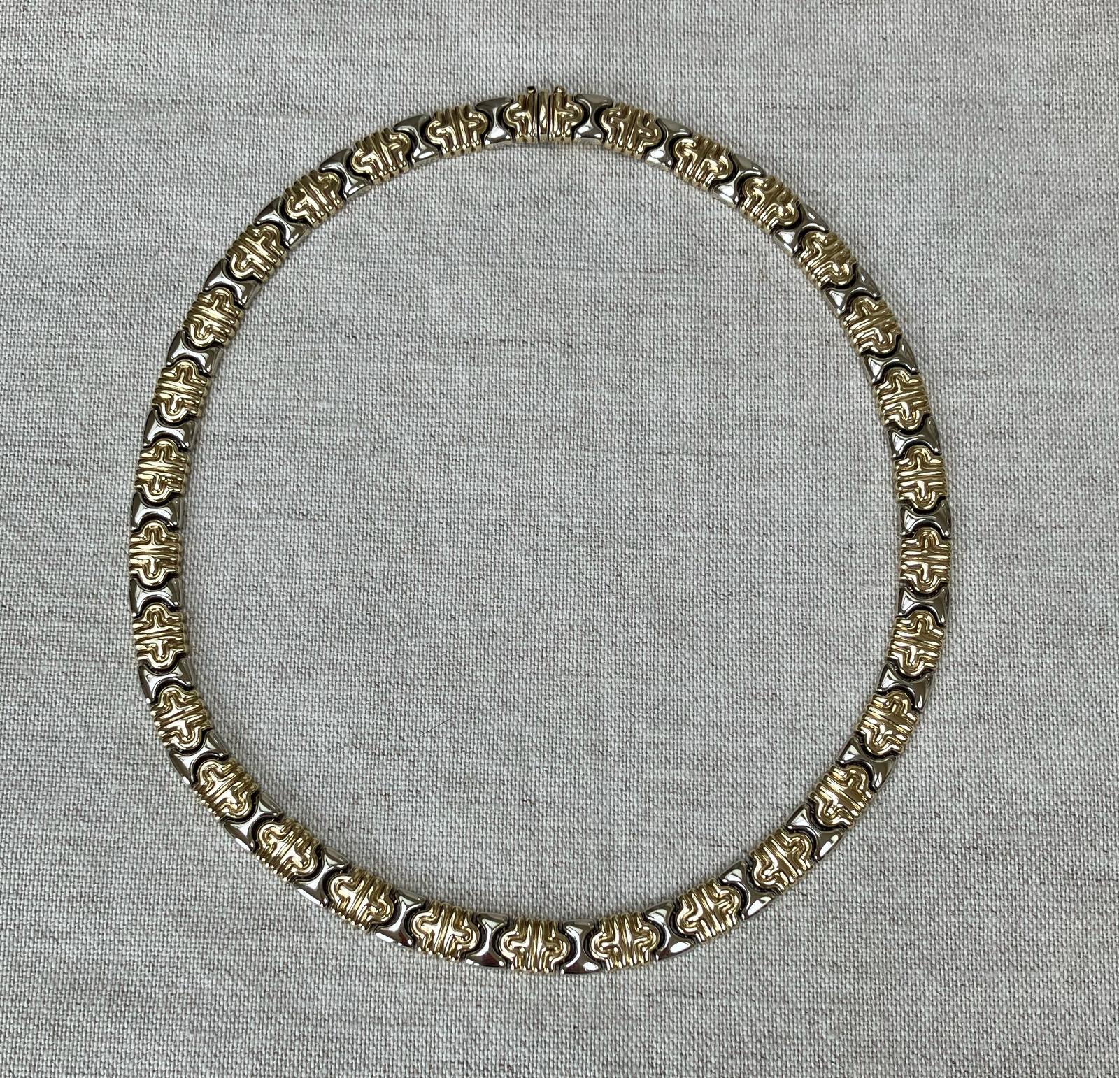 Vintage Italian 9ct Two Tone Gold Flat Byzantine Link Necklace