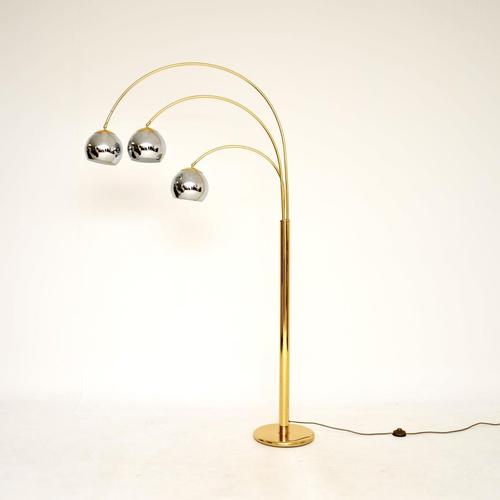 A stunning vintage Italian brass and chrome arc floor lamp, dating from the 1970s. This is of outstanding quality, with a stylish and useful design. The brass frame stands on a round platform base, there are three lamp arms that can swivel independently. The lamp shades are chrome, they can also swivel, tilt and rotate. This is in excellent condition, with only some extremely minor surface wear. It has been newly re-wired and is in good working order. Width – 107cm, 42 inches Depth – 30cm, 12 inches Height – 180cm, 72 inches