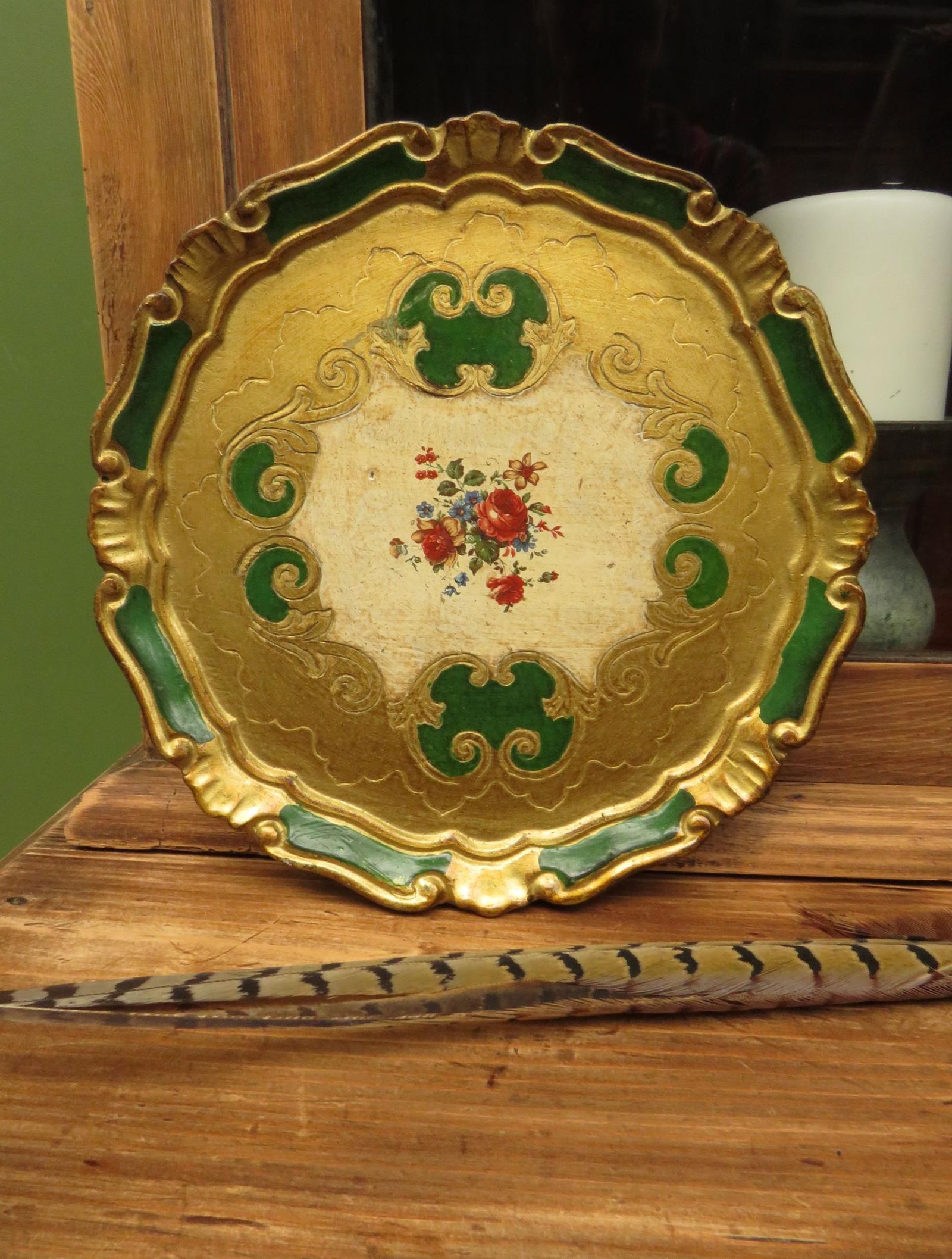 Vintage Italian Florentine Papier Mache Tray, Cocktail Tray with Flowers