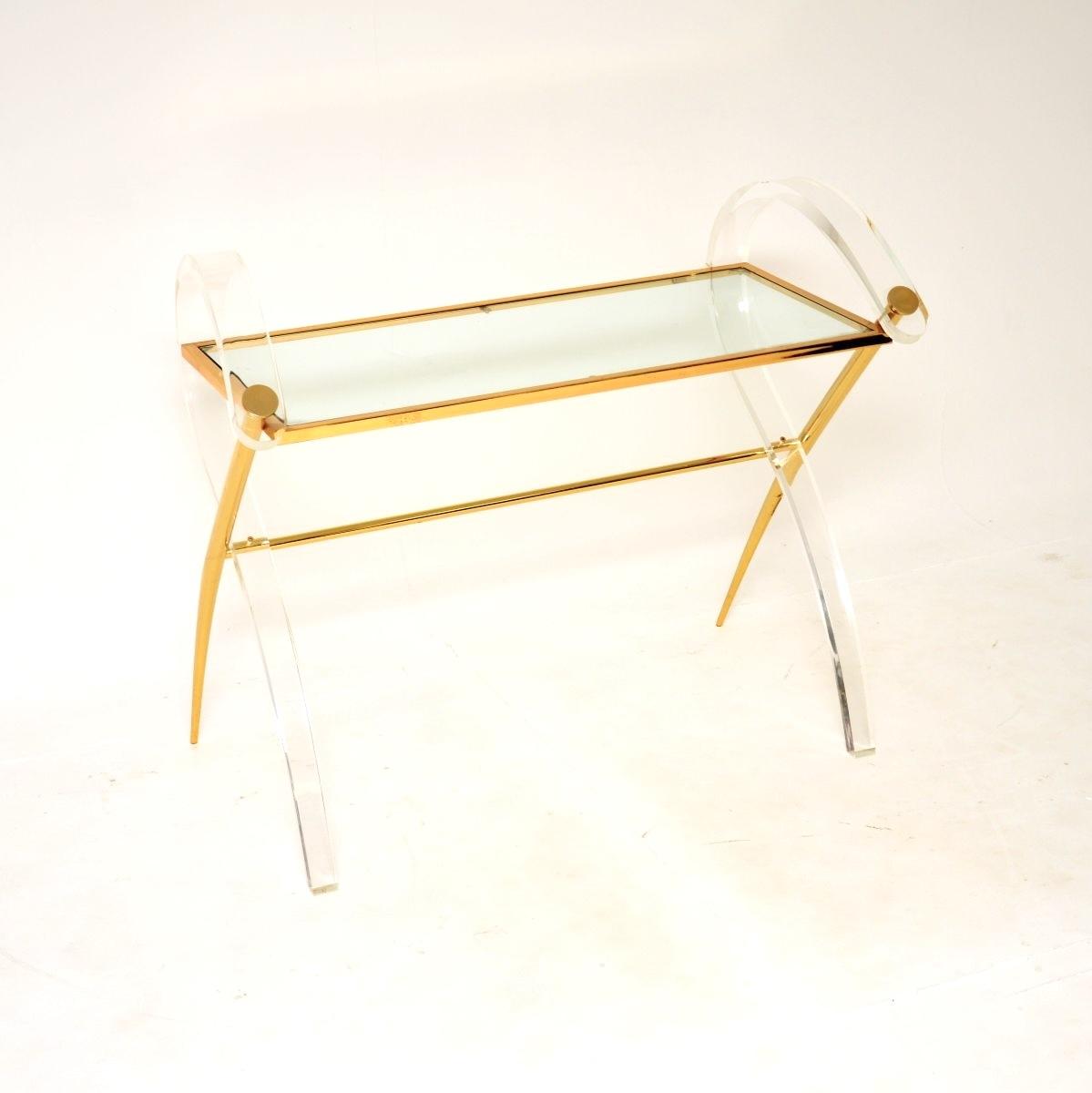 A stunning vintage Italian Lucite and gold finish console table, dating from the 1970s.