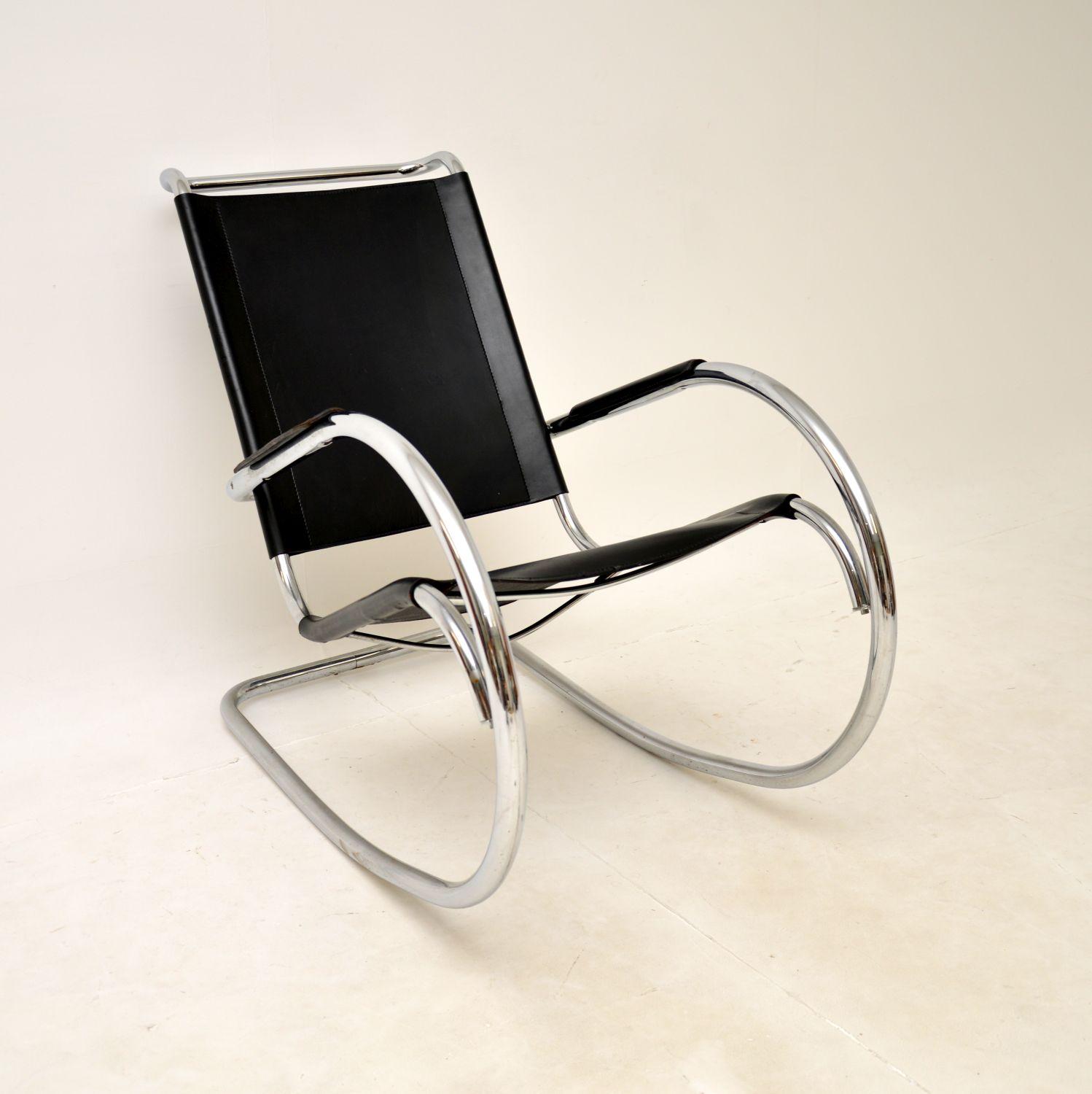 Vintage Italian Steel & Leather Rocking Chair by Fasem