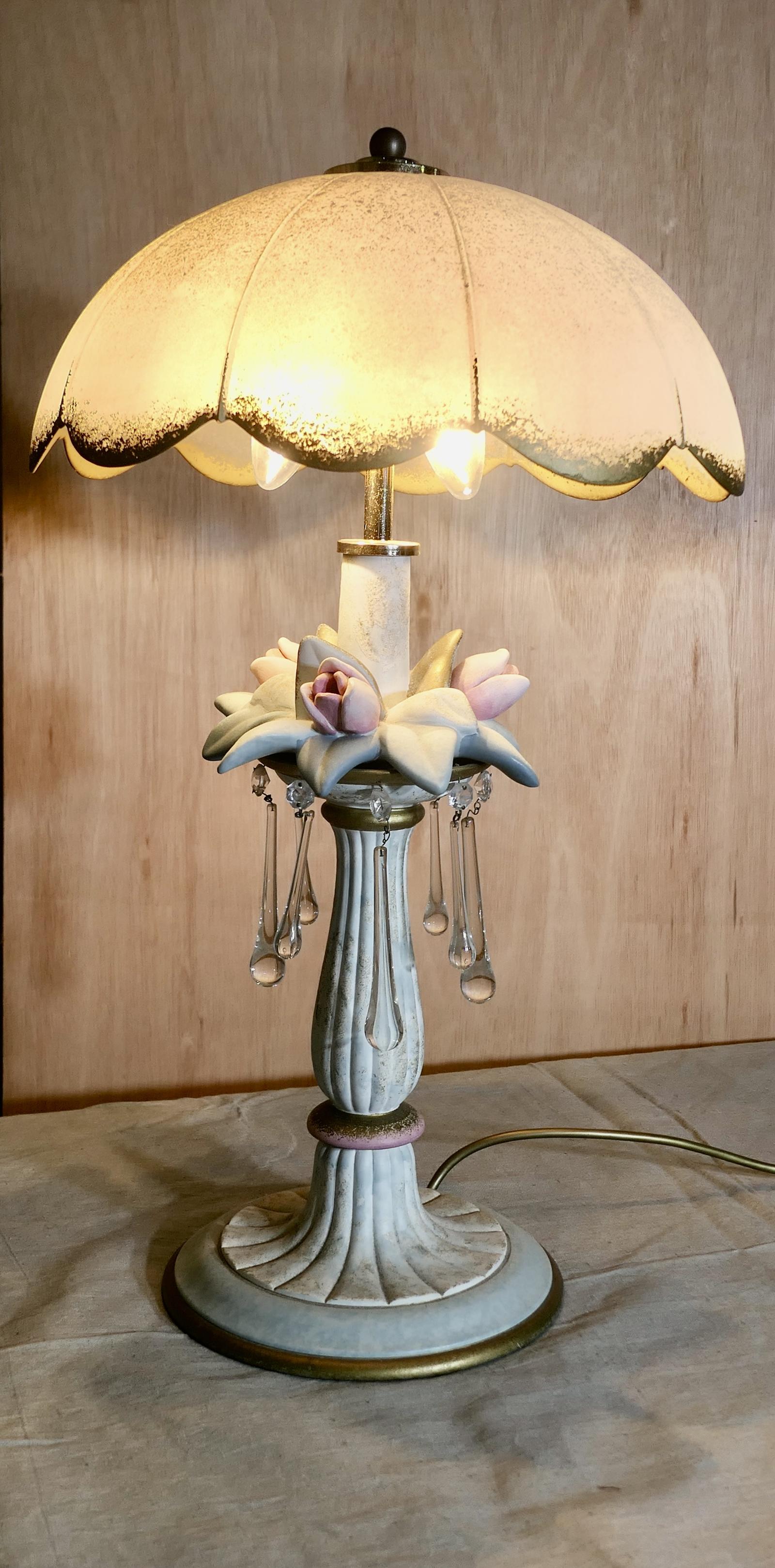 Vintage Italian Table Lamp in Porcelain and Glass