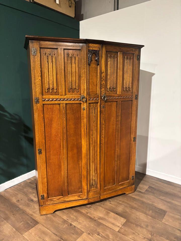 Vintage Jacobean Style Carved Medium Oak Ladies Wardrobe