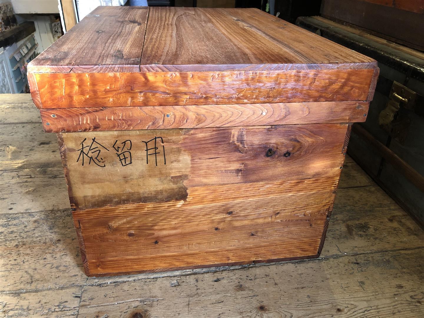 Vintage Pine Japanese Tea Chest with Advertising 1960s