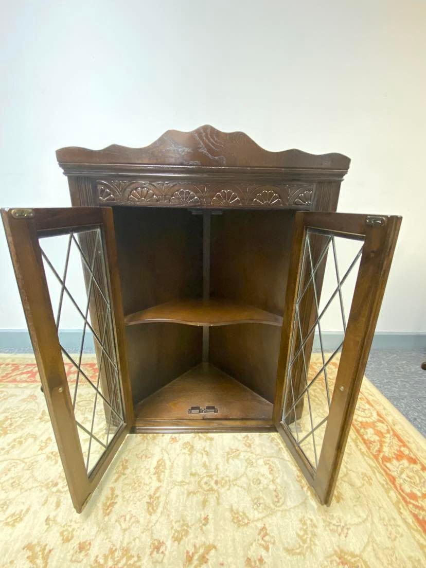 Vintage Jaycee Furniture - Oak And Glazed Hanging Corner Cabinet - Made in England 1970s