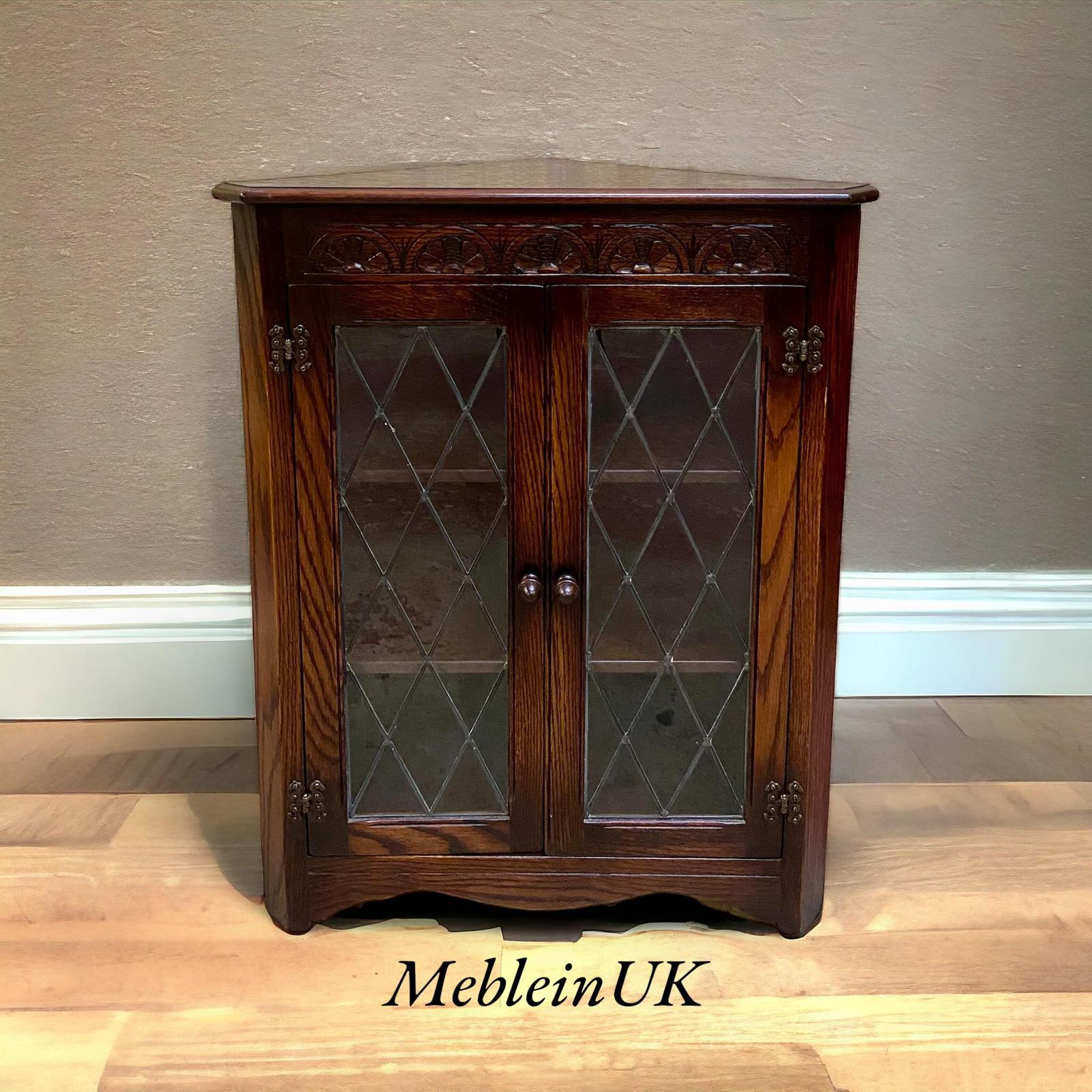 Vintage Jaycee Furniture Oak Corner Display Cabinet / Cupboard Hall Table