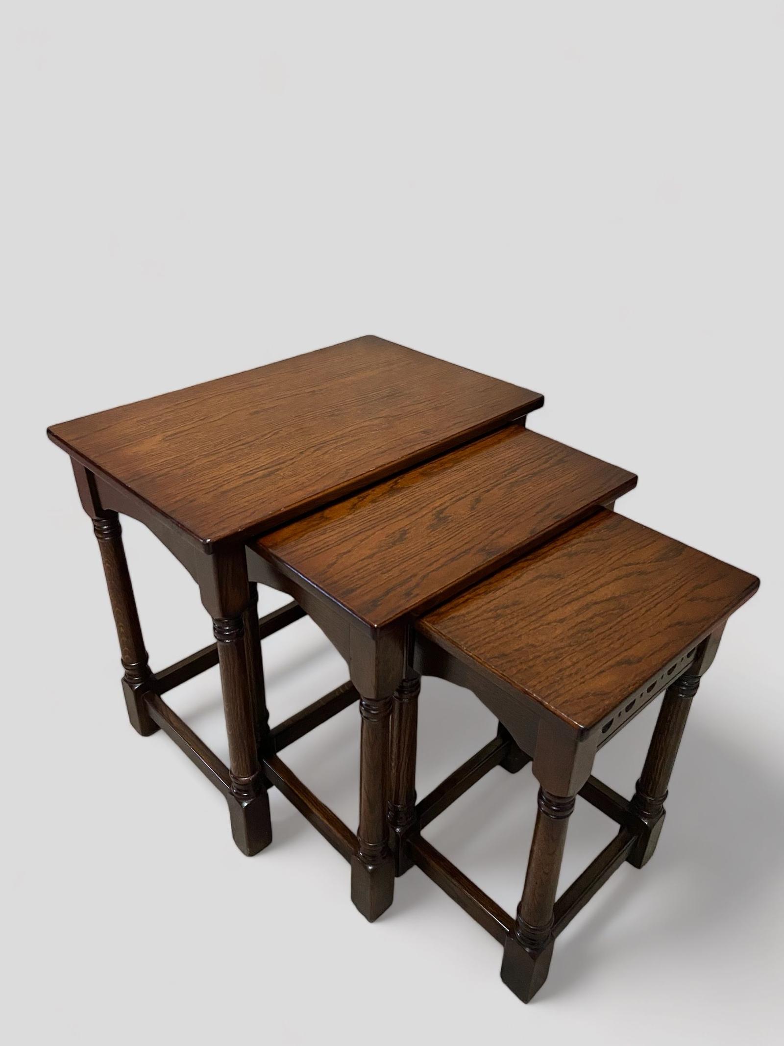 Vintage Jaycee Furniture / Old Charm Style Oak Nest of 3 Tables / Tudor Brown / Made in England 1970s
