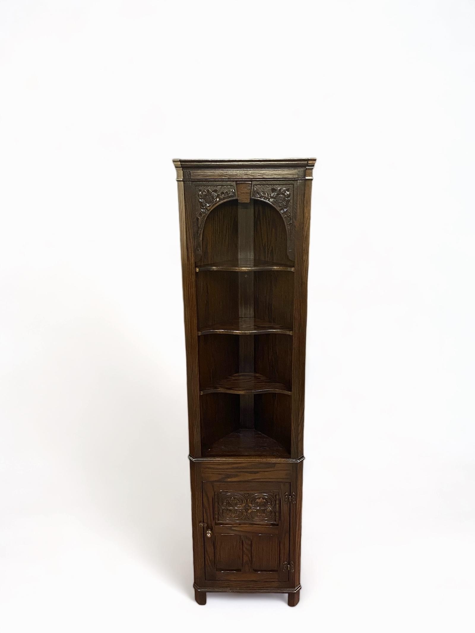 Vintage Jaycee Tall Narrow Oak Corner Cabinet / Dark Oak