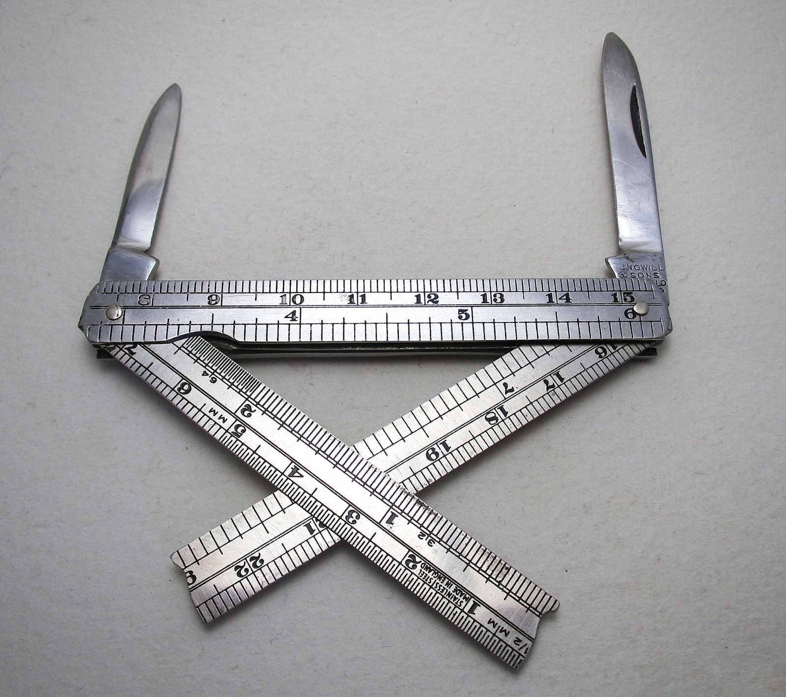 Vintage J.Nowill & Sons Stainless Steel Combination Pocket Penknife & Ruler Measure Tape, Folding Fruit Pen Knife, Sheffield
