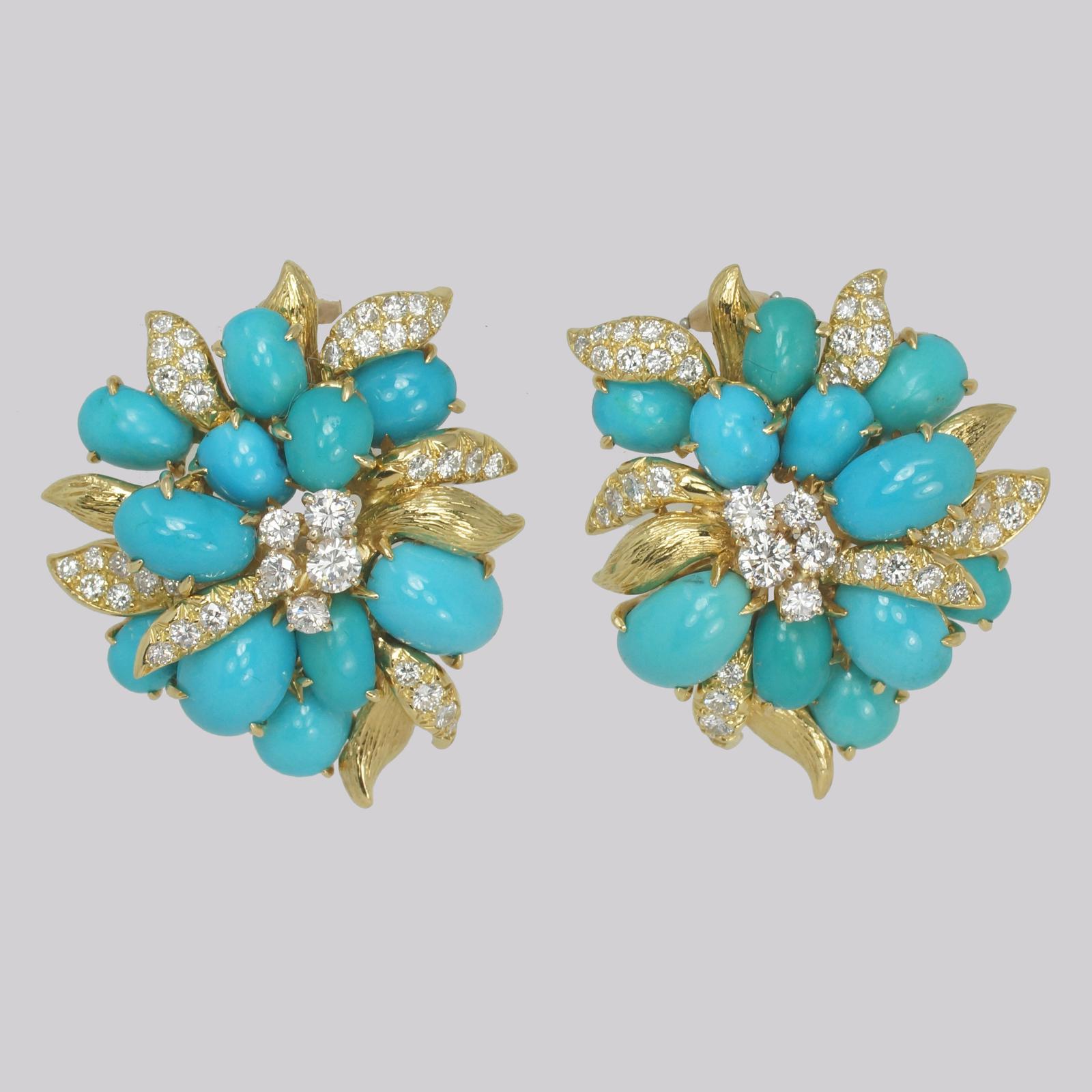 Vintage Julius Cohen Cluster Earrings Turquoise & Diamond 1960s Flower Earrings (1 of 12)