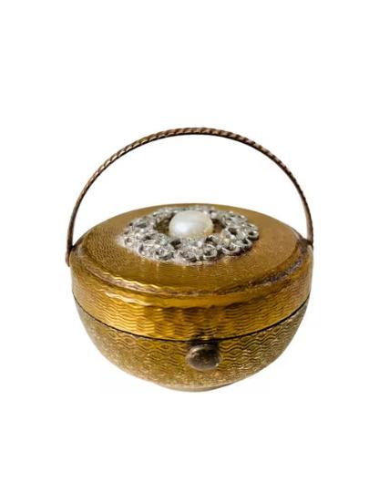 Vintage Kigu Bouquet Figural Jewelled Basket Powder Compact c.1950