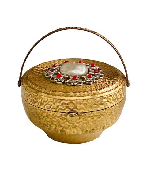 Vintage Kigu Bouquet Figural Jewelled Basket Powder Compact c.1950