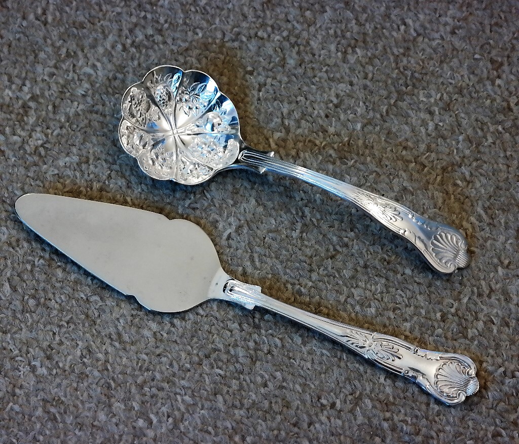 Vintage Kings Pattern E.P.N.S. Pastry Slice & Ornate Fruit Spoon - Ideal Gift / Present