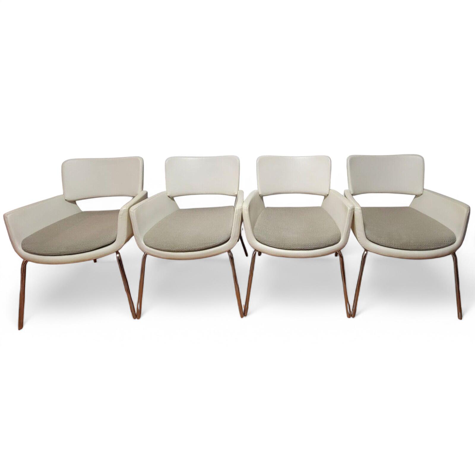 Vintage Korus White Leather Industrial Style Dining Chairs Set of 4