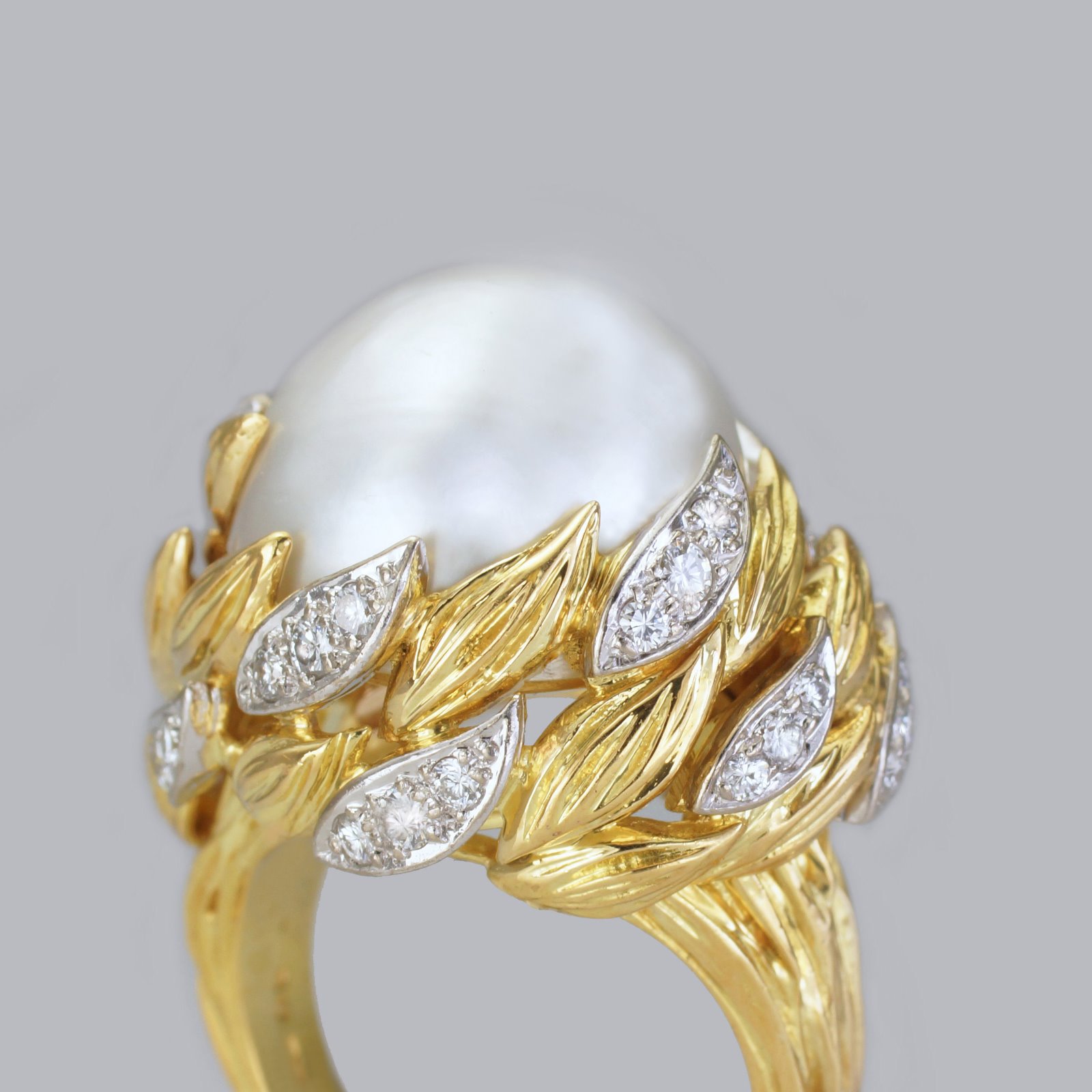 Vintage Kutchinsky Pearl & Diamond Ring 18ct Gold Huge Cocktail Ring London 1970