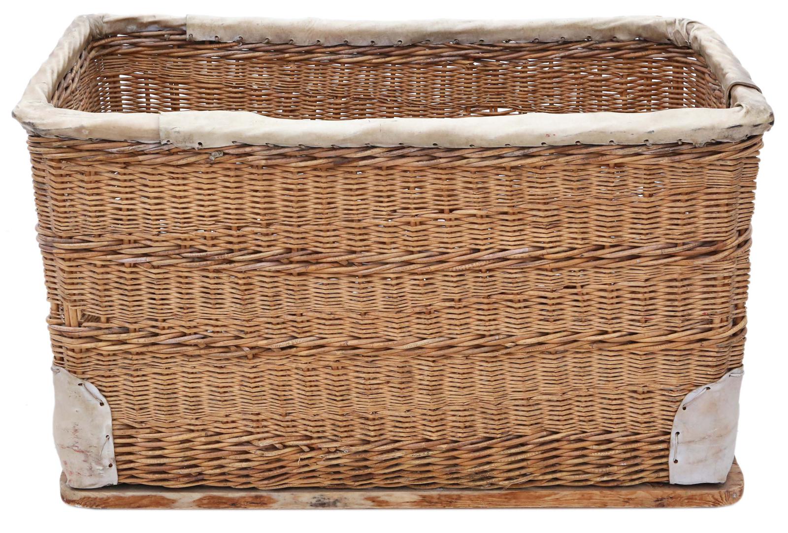Vintage large strong cane and pig skin log or storage basket (1 of 8)