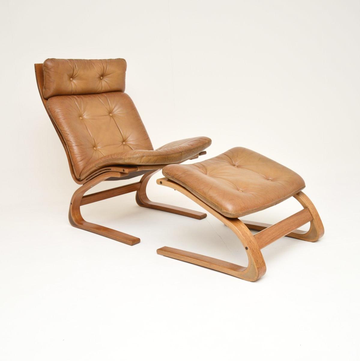 Vintage Leather Kengu Chair & Stool by Elsa & Nordahl Solheim for Rykken (1 of 12)