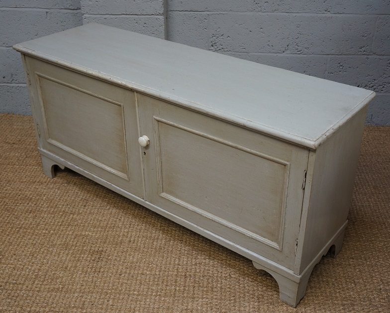 Vintage Light Grey Painted Pine Low Cupboard