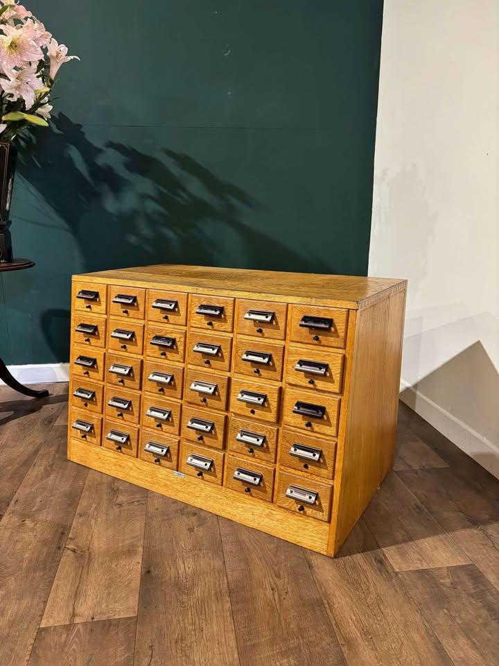 Vintage Light Oak Bank of 30 Index Drawers (1 of 16)
