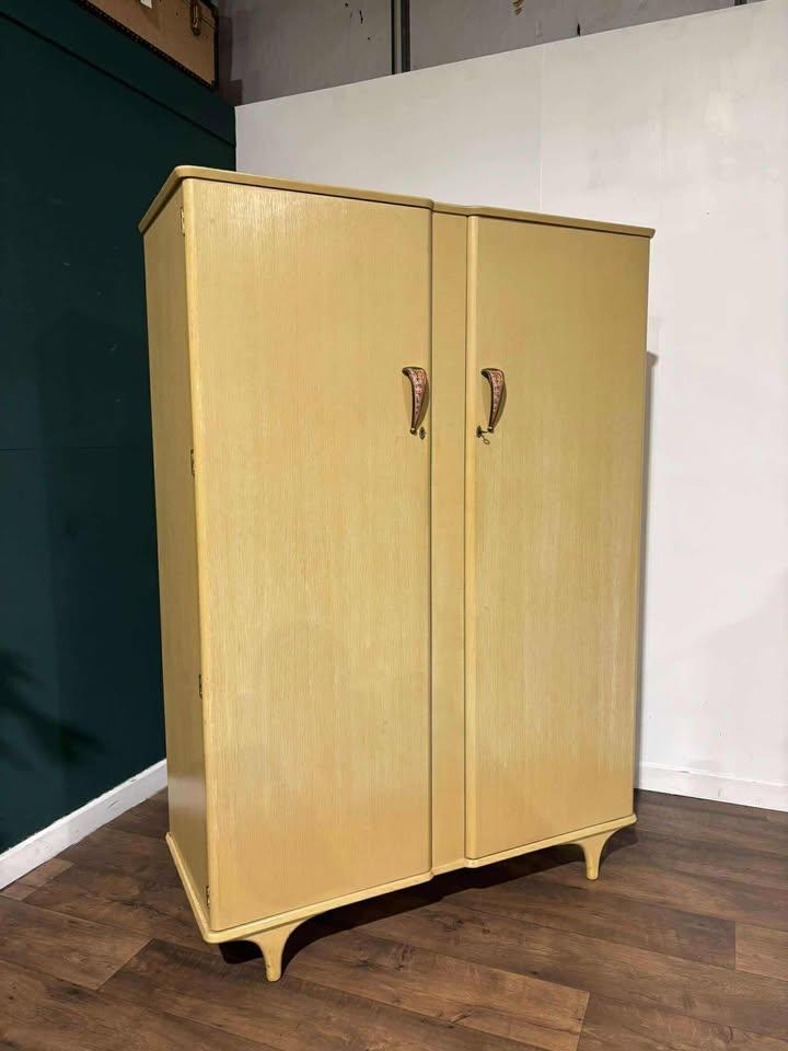 Vintage Lime Washed Veneered Ladies Wardrobe c.1950