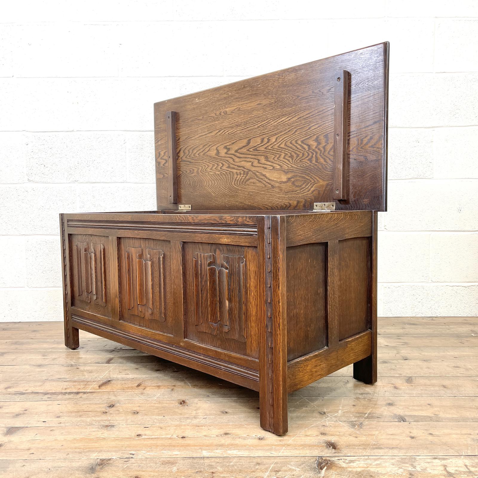 Vintage Linen Fold Oak Blanket Box (1 of 9)