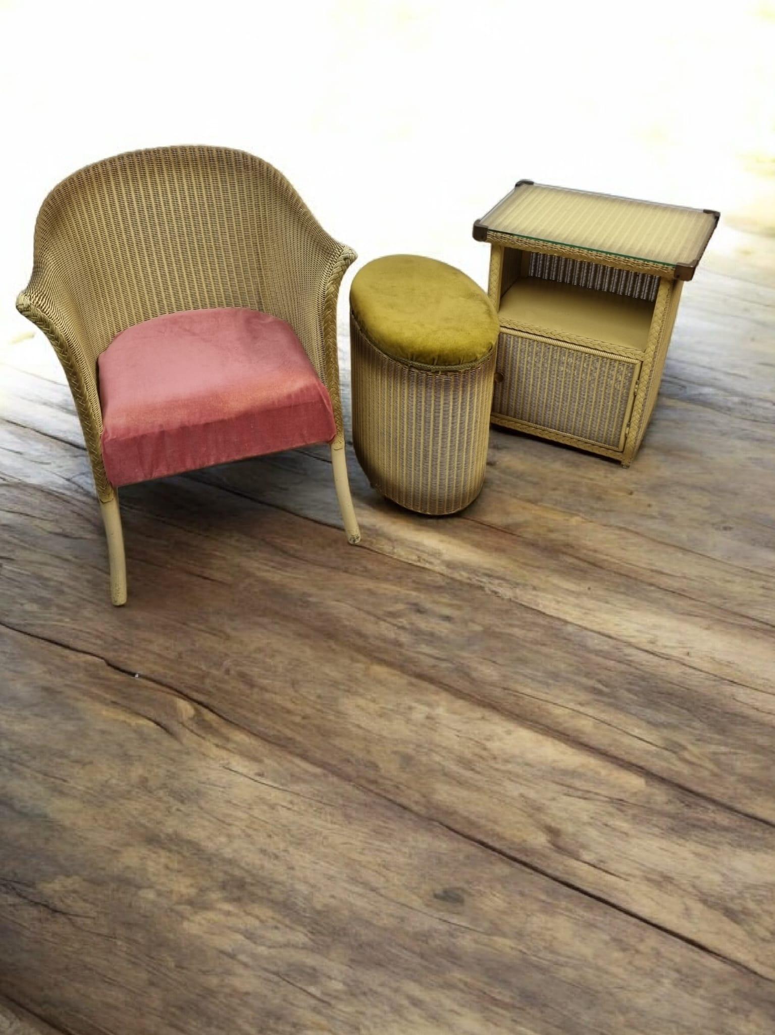 Vintage Lloyd Loom Lusty Bathroom Set / Armchair / Cabinet / Ottoman
