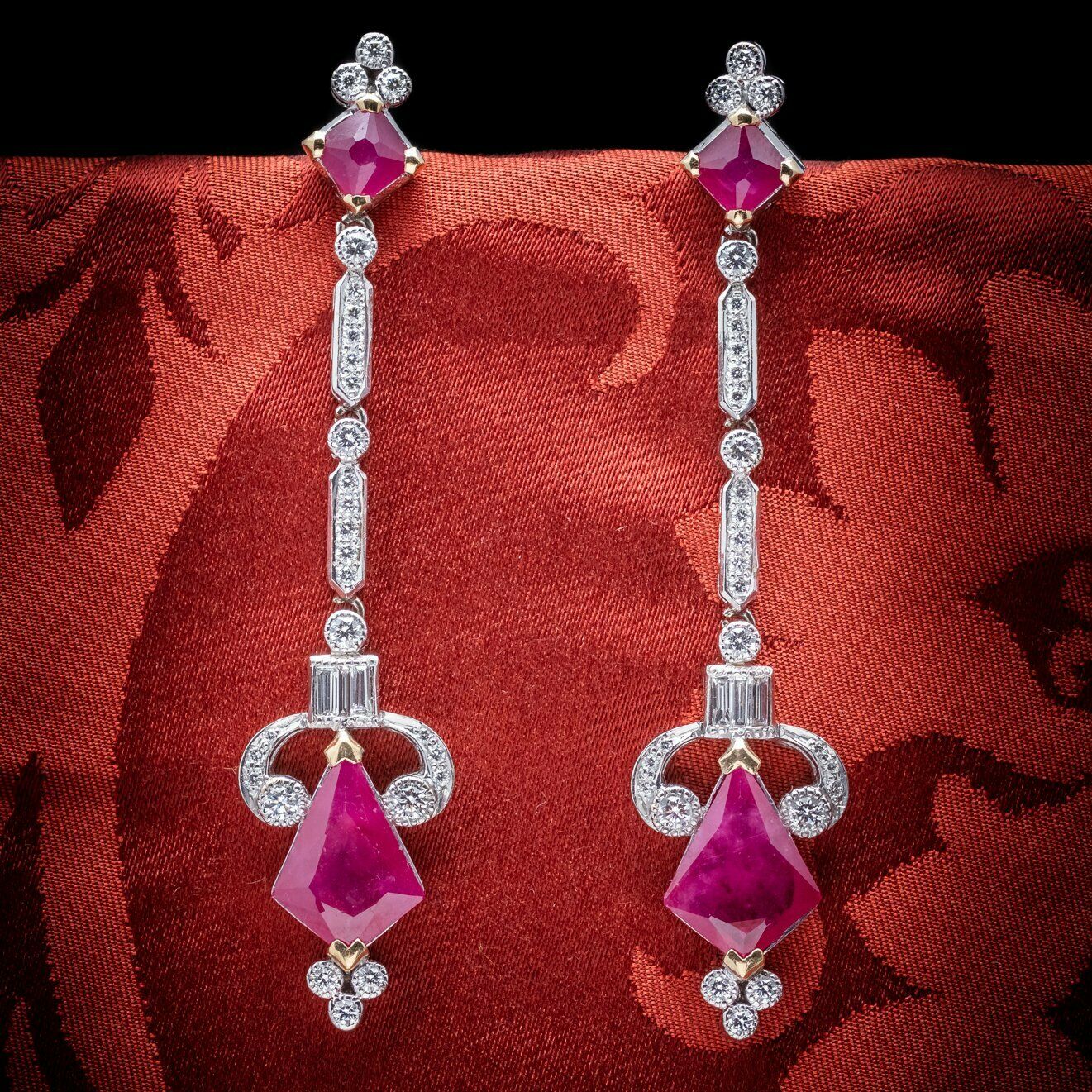 Vintage Long Ruby Diamond Drop Earrings 18ct White Gold c.1960