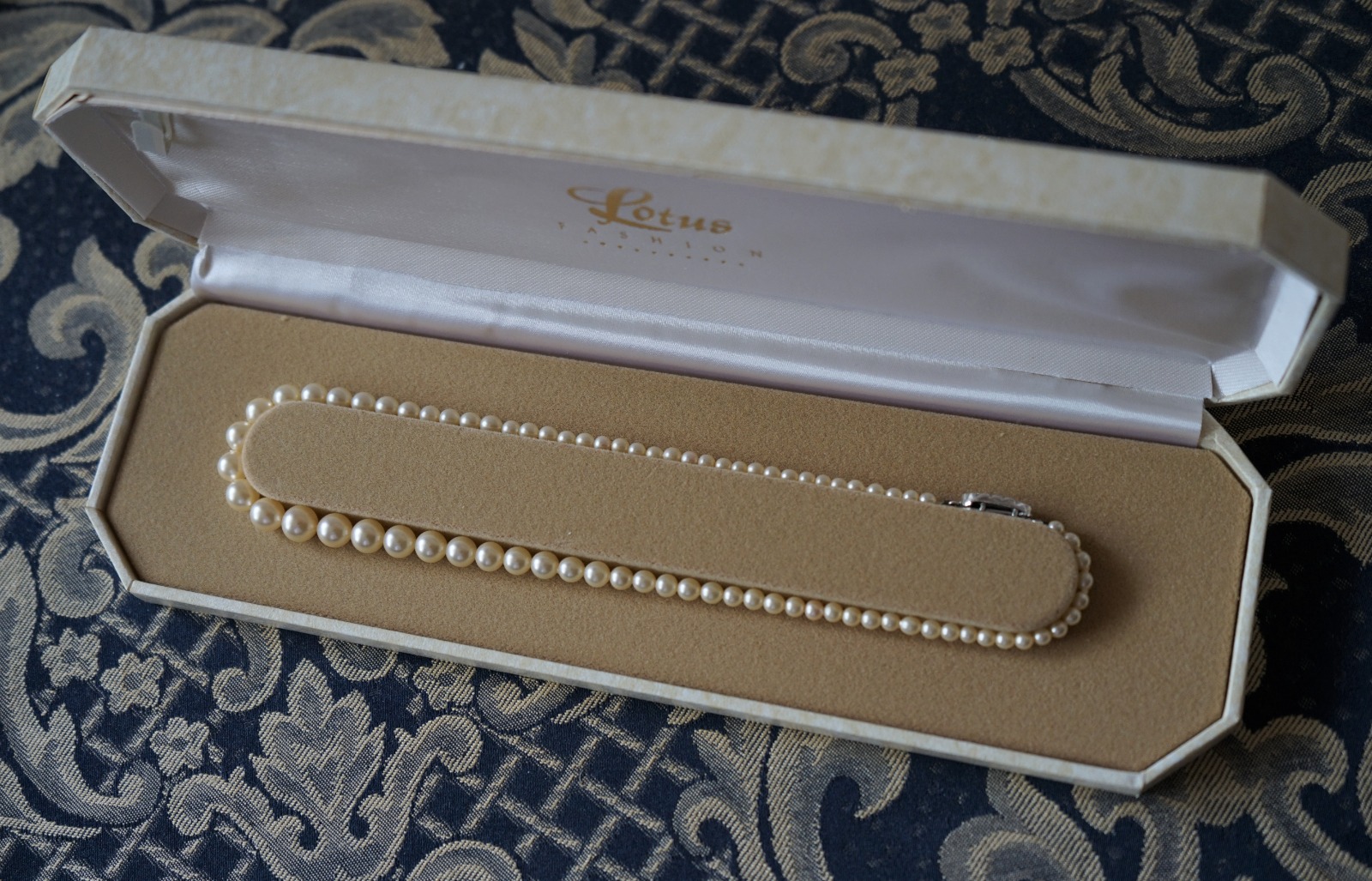 Vintage Lotus Fashion Single Strand Graduated Pearl Necklace in Box - Ideal Gift / Present / Jewellery