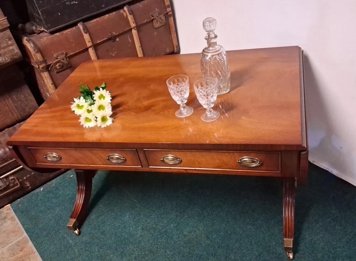 This Vintage Made by Bevan Funnell Regency Style Sofa Mahogany Coffee Drinks Table is located in Mid Glamorgan, United Kingdom