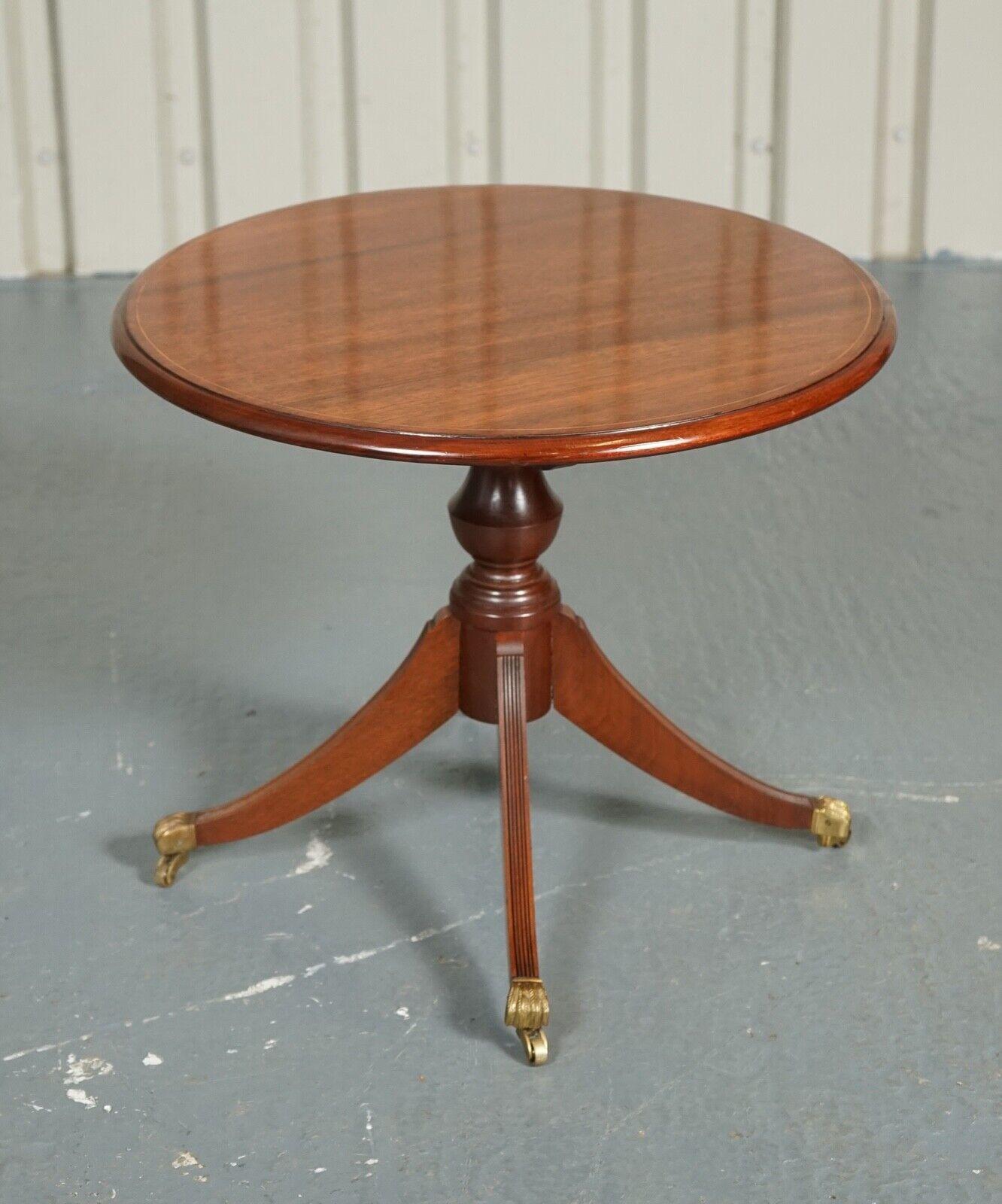 Vintage Mahogany Circular Occasional Side End Lamp Table on Brass Castors