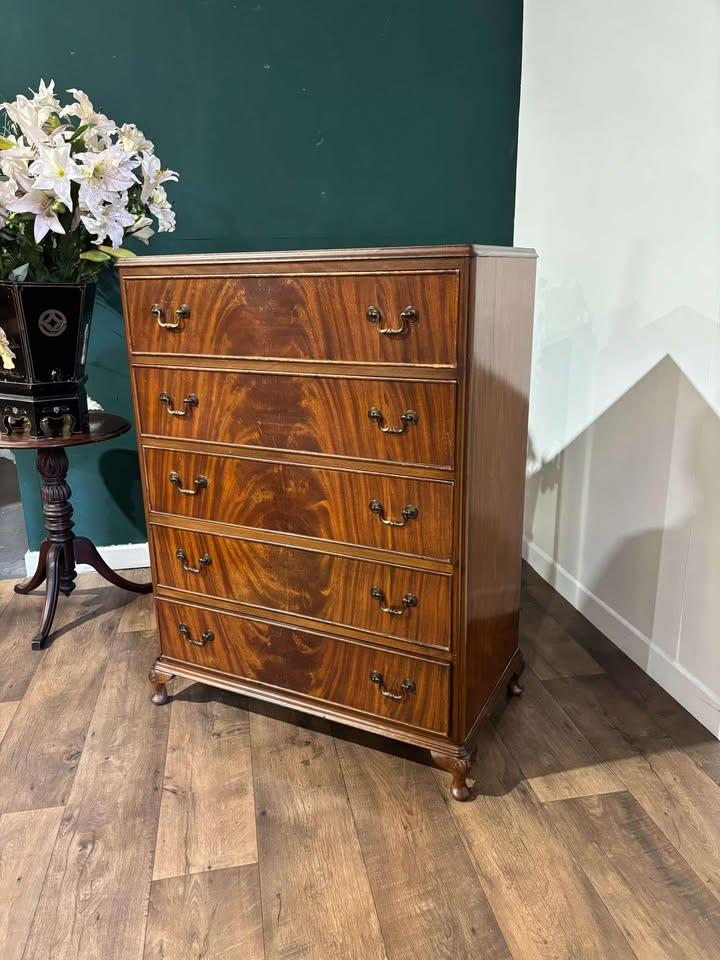 Vintage Mahogany Veneered Five Drawer Chest (1 of 15)