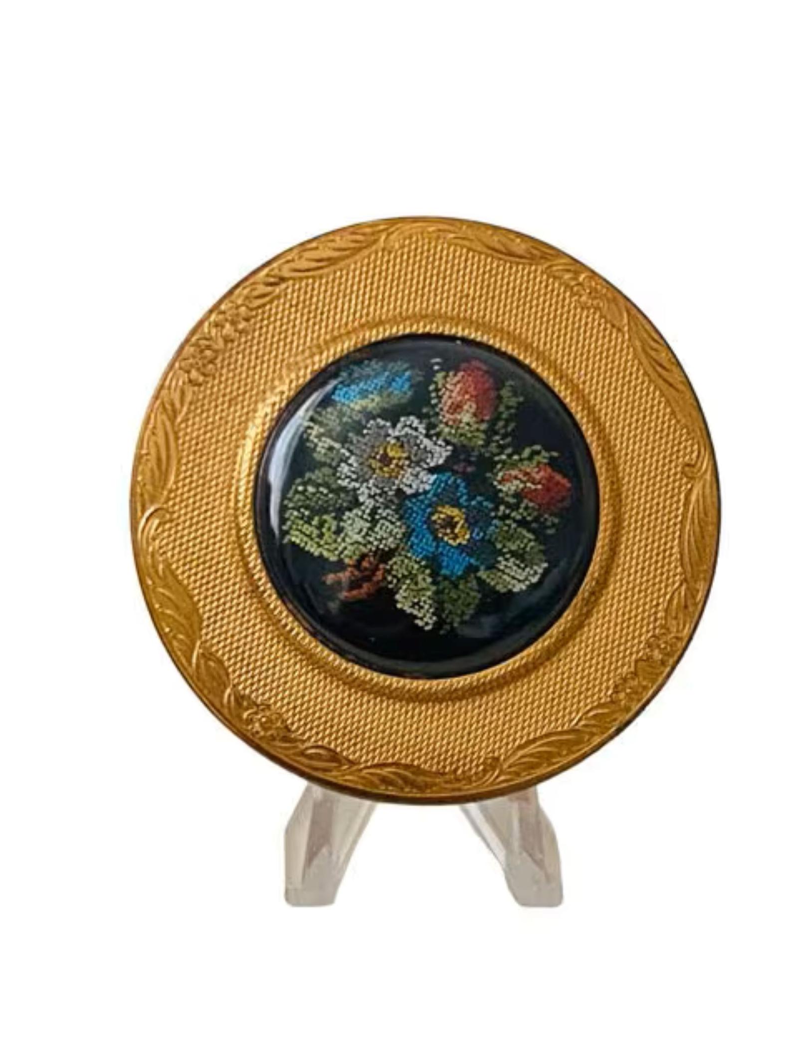 Vintage Mascot ASB Lucite & Petite Point Powder Compact Circa 1950