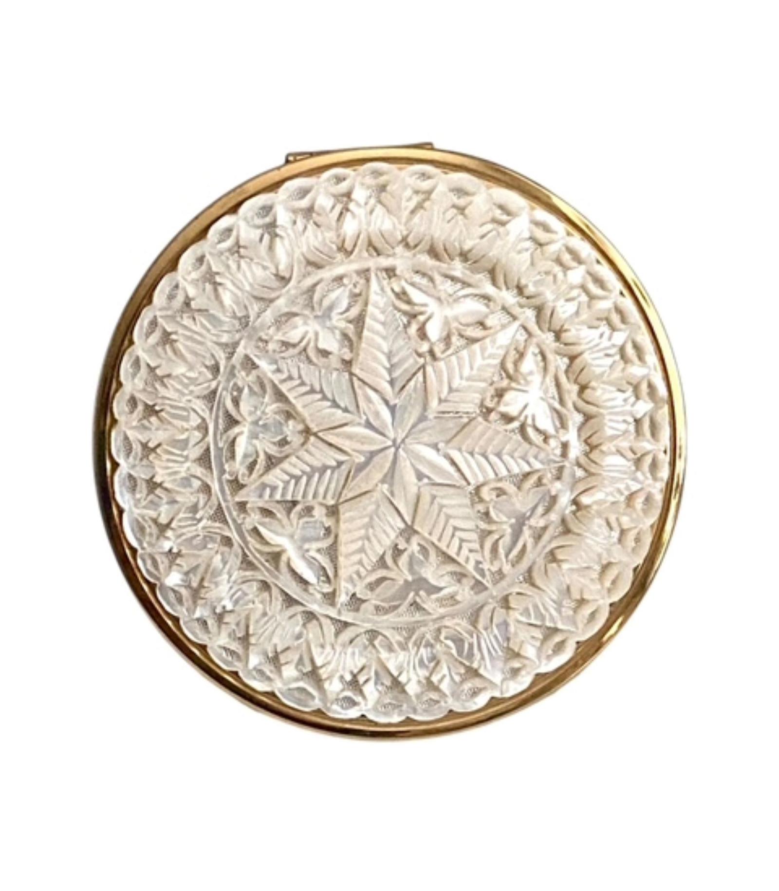 Vintage Melissa Carved Mother of Pearl Powder Compact