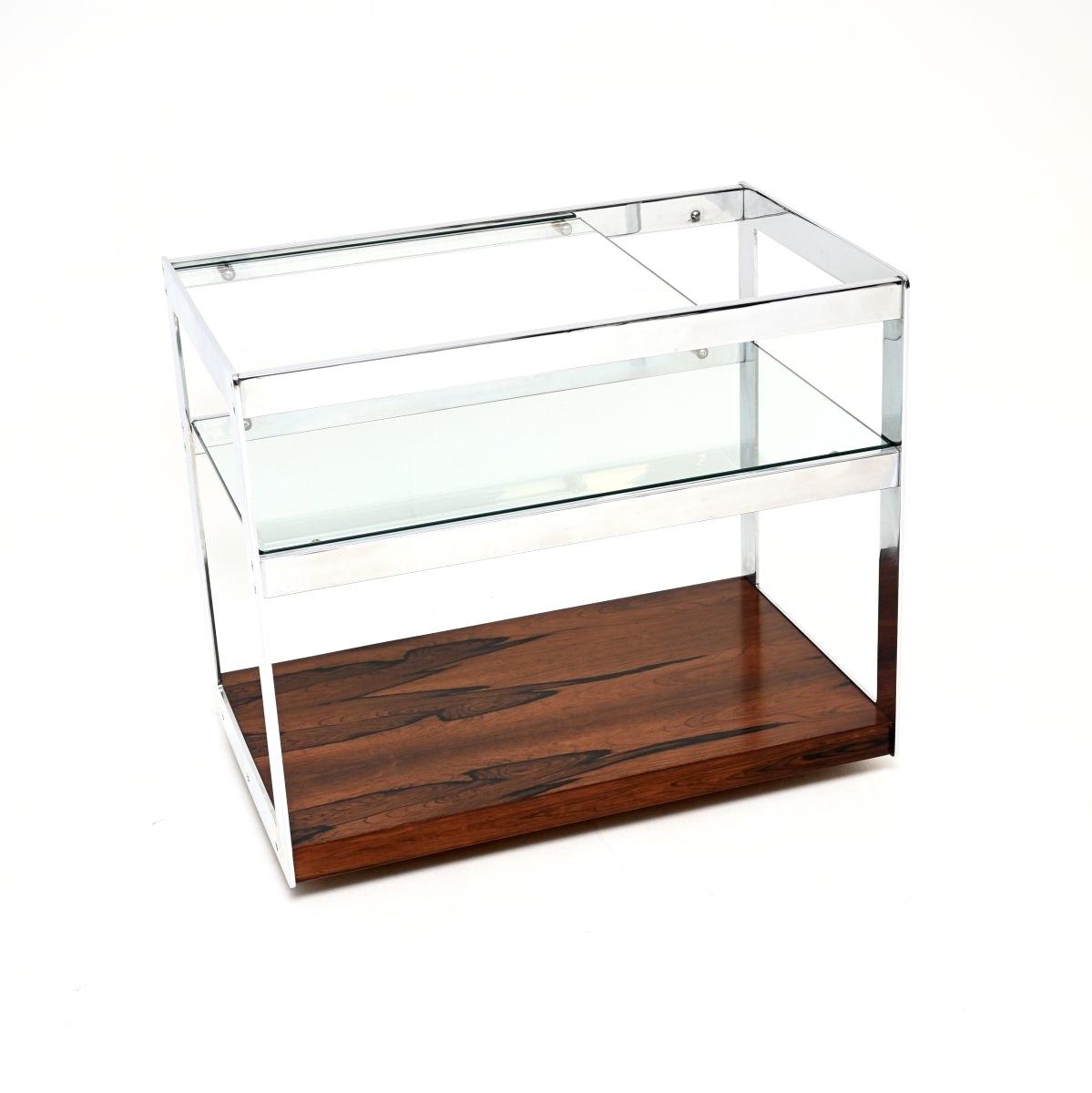This Vintage Merrow Associates Rosewood and Chrome Drinks Trolley is located in Greater London, United Kingdom
