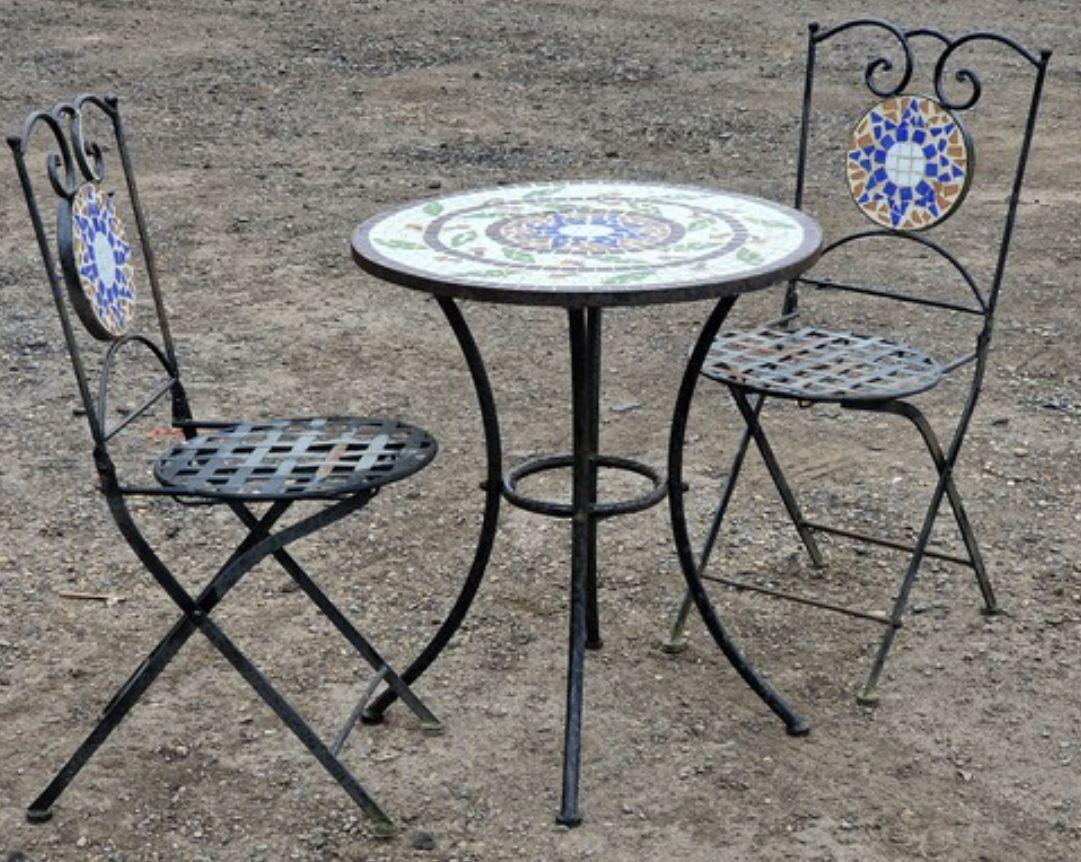 Vintage Metal Bistro Set with Mosaic Detail - Delivery Available 0322