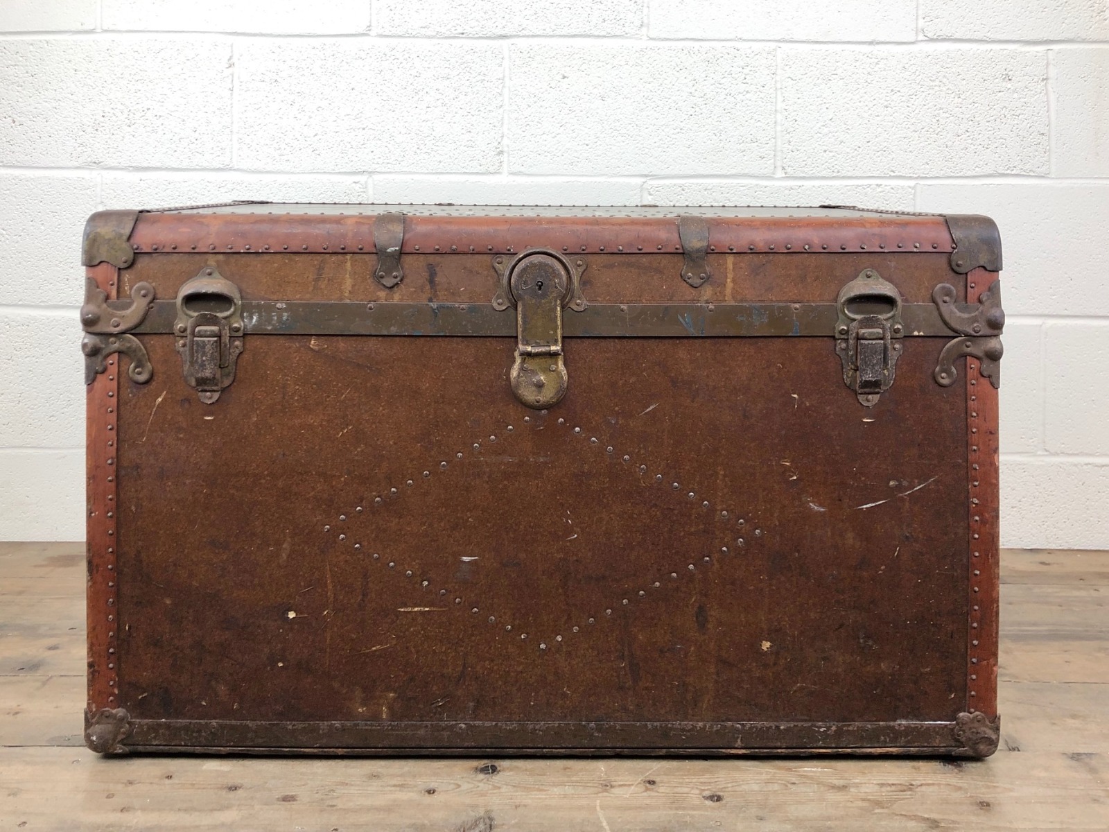 Vintage Metal Bound Leather Steamer Trunk (1 of 12)