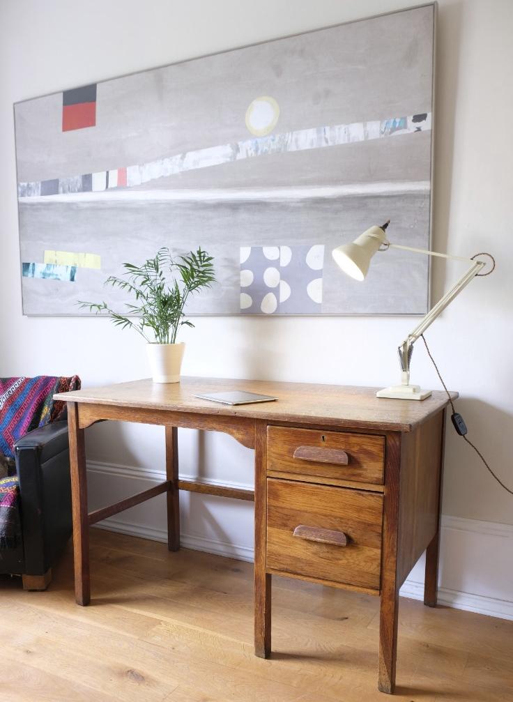Vintage Mid 20th Century Oak Desk with Two Drawers